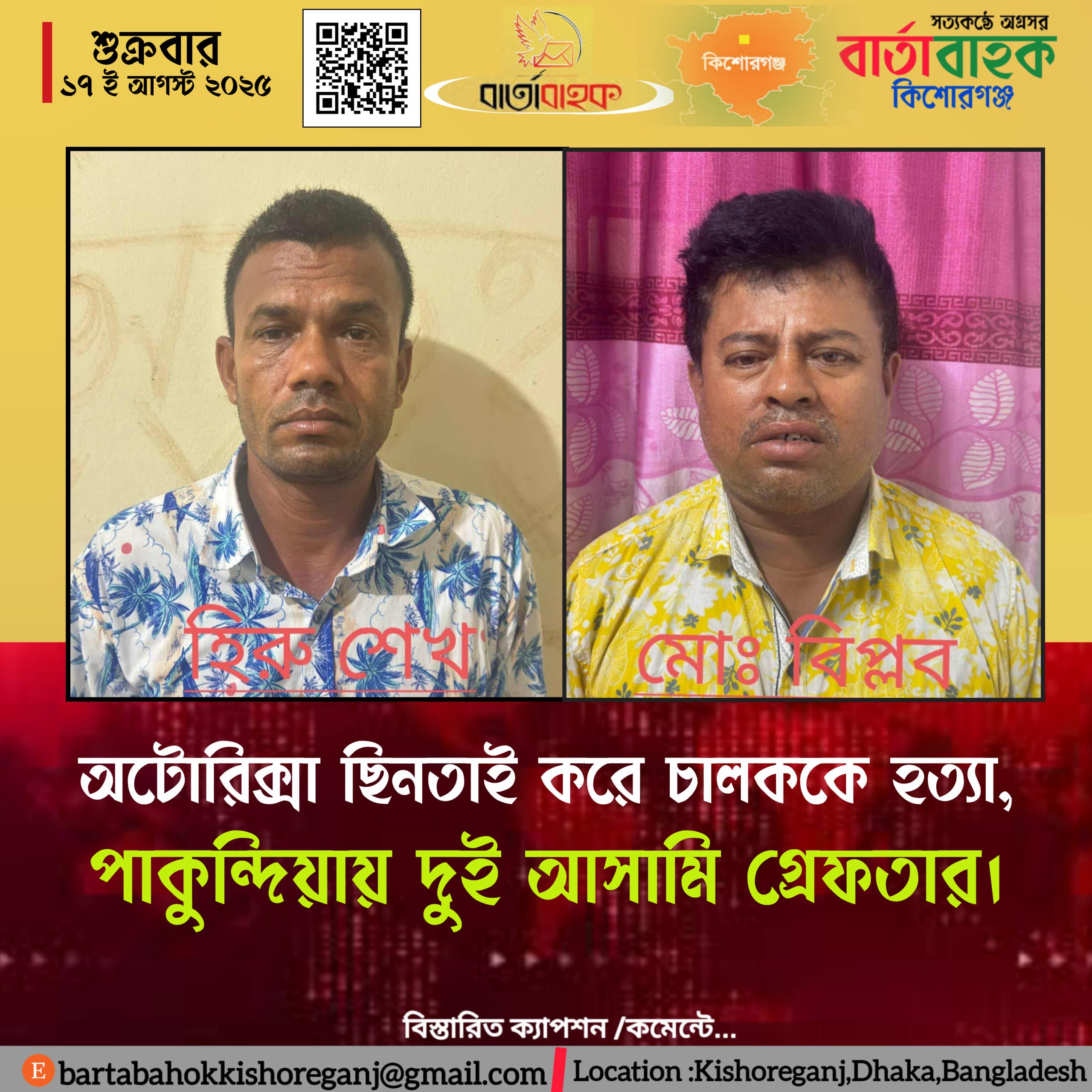 অটোরিক্সা ছিনতাই করে চালককে হত্যা, পাকুন্দিয়ায় দুই আসামি গ্রেফতার