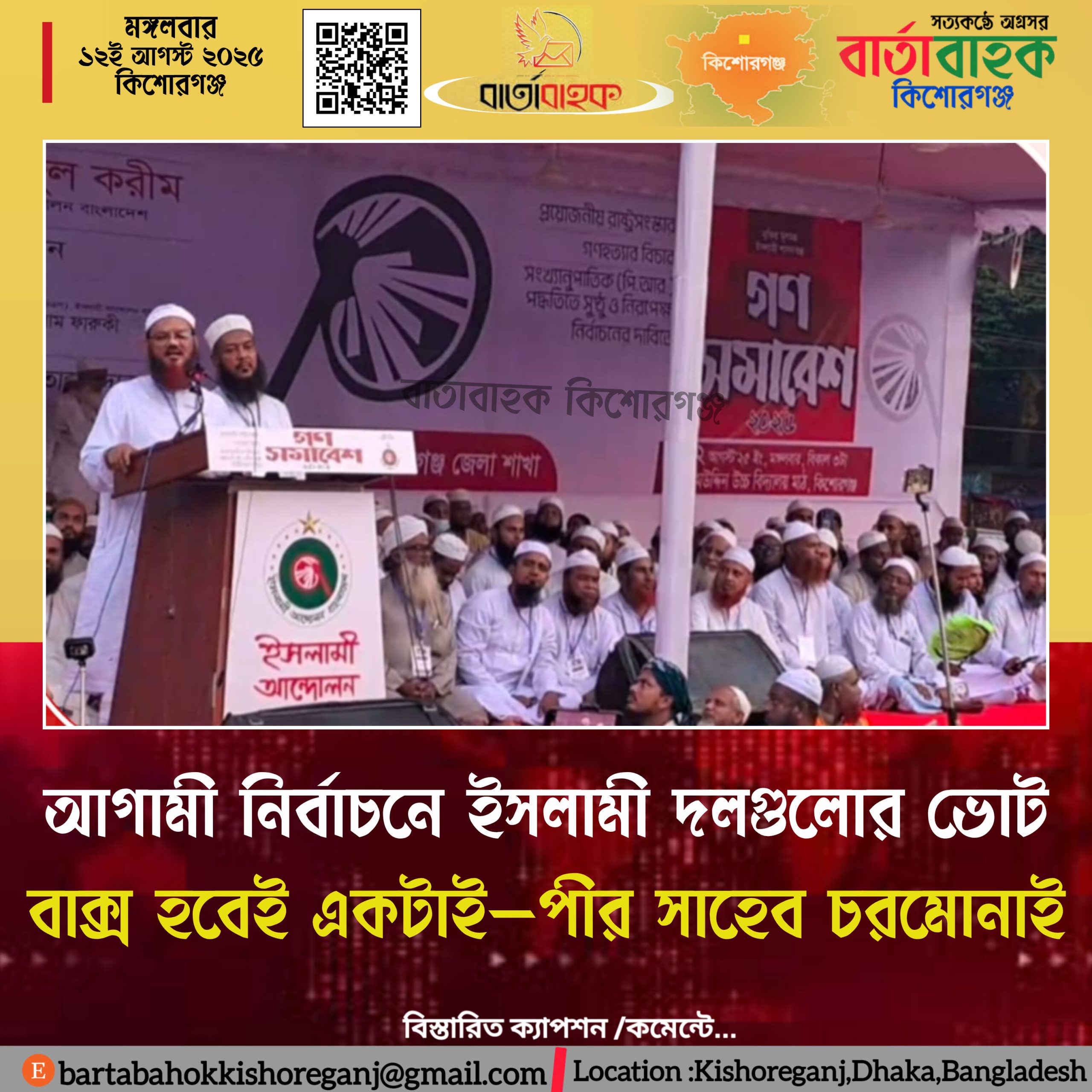 প্রয়োজনীয় রাষ্ট্রসংস্কার, গণহত্যার বিচার এবং সংখ্যানুপাতিক (পি.আর) পদ্ধতিতে সুষ্ঠু ও নিরপেক্ষ নির্বাচনের দাবিতে কিশোরগঞ্জে গণসমাবেশ করেছে ইসলামী আন্দোলন বাংলাদেশ জেলা শাখা।