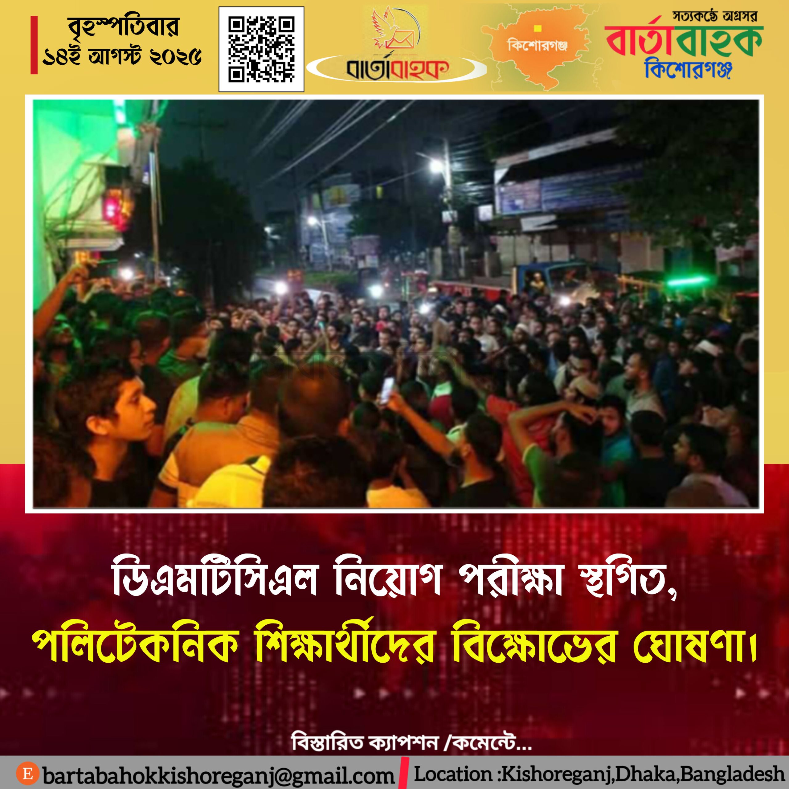 ডিএমটিসিএল নিয়োগ পরীক্ষা স্থগিত, পলিটেকনিক শিক্ষার্থীদের বিক্ষোভের ঘোষণা