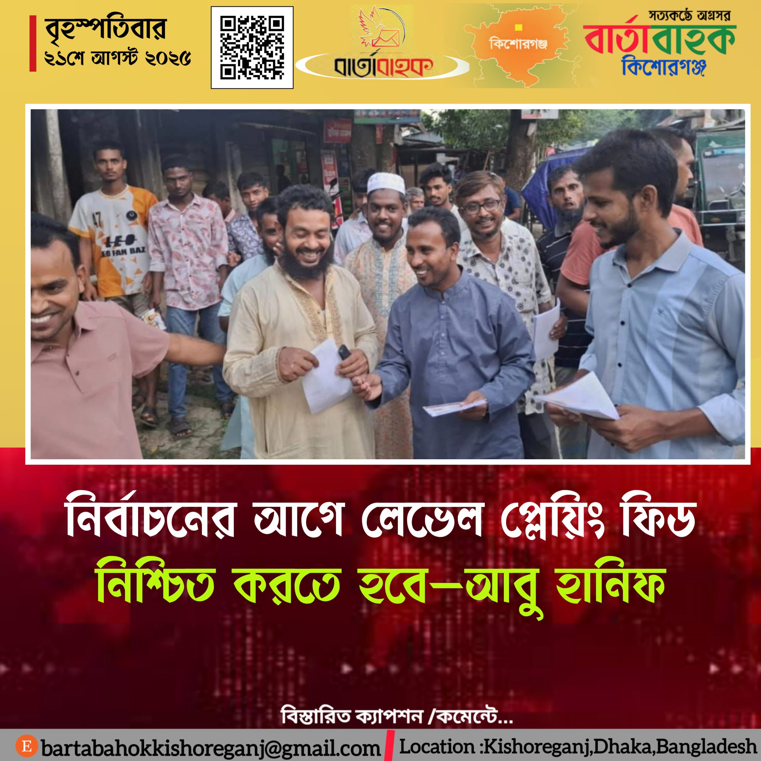 কিশোরগঞ্জ-১ আসনে গণঅধিকার পরিষদের ট্রাক প্রতীকের প্রার্থী, দলের উচ্চতর পরিষদ সদস্য ও গণমাধ্যম সমন্বয়ক আবু হানিফ ২১ আগস্ট বিকেলে সদর উপজেলার কর্শাকড়িয়াইল ও দানাপাটুলী ইউনিয়নের বিভিন্ন স্থানে গণসংযোগ করেছেন।